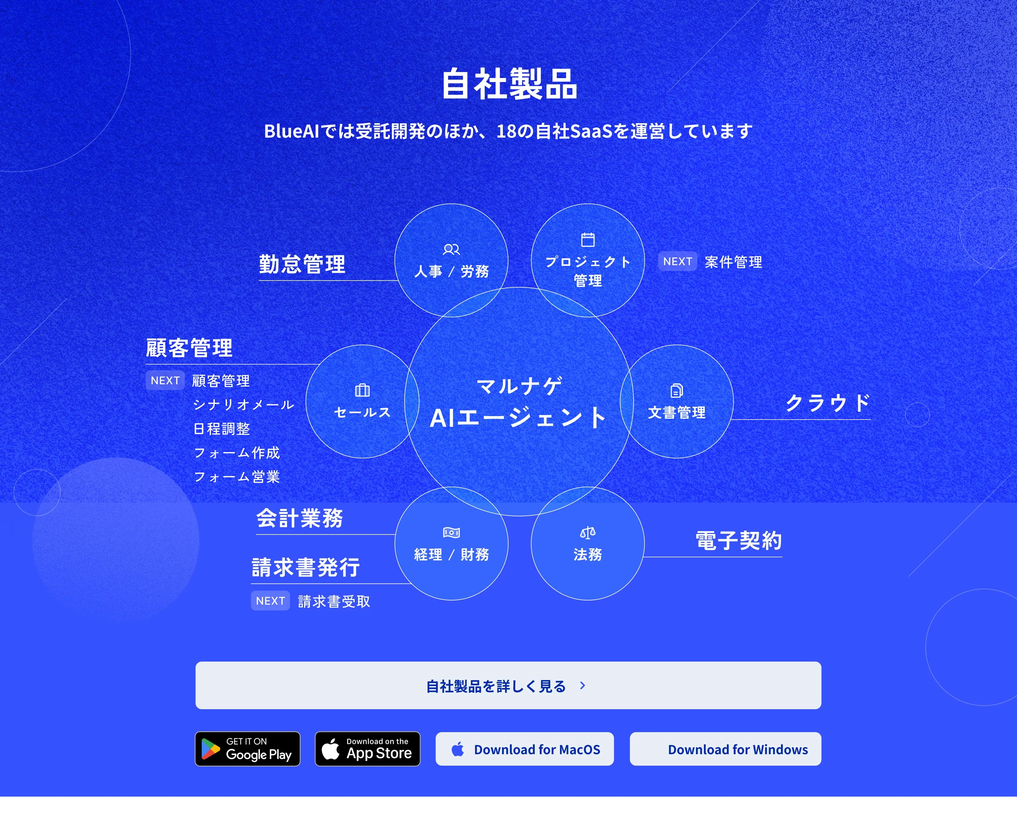 「問い合わせ対応をAIに任せたい」「社内ナレッジを検索できるBotが欲しい」。ChatGPT・Claude・Geminiなど最適なLLMを選定し、御社の業務に特化したAIエージェントを開発します。
